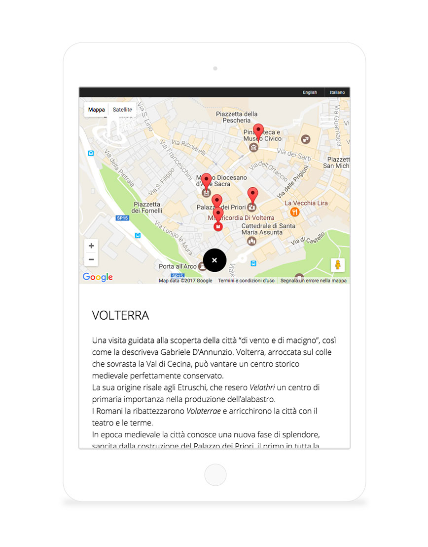 The site is completed by the possibility of discovering the various itineraries offered, which can be chosen correlated from any info necessary to better understand the different attractions to ensure that the user is accompanied in his choice towards the tour that best suits his taste and / or personal interest.