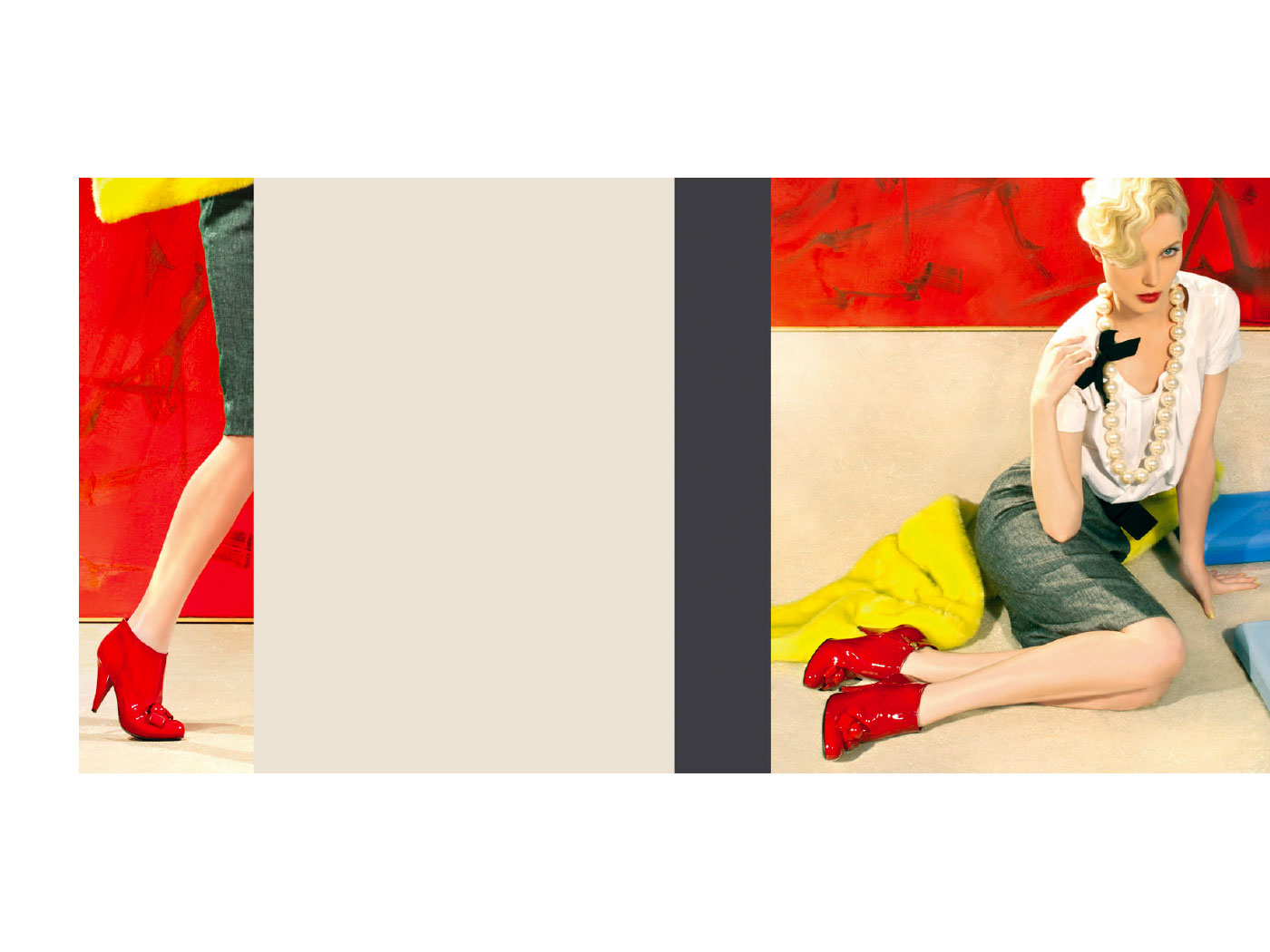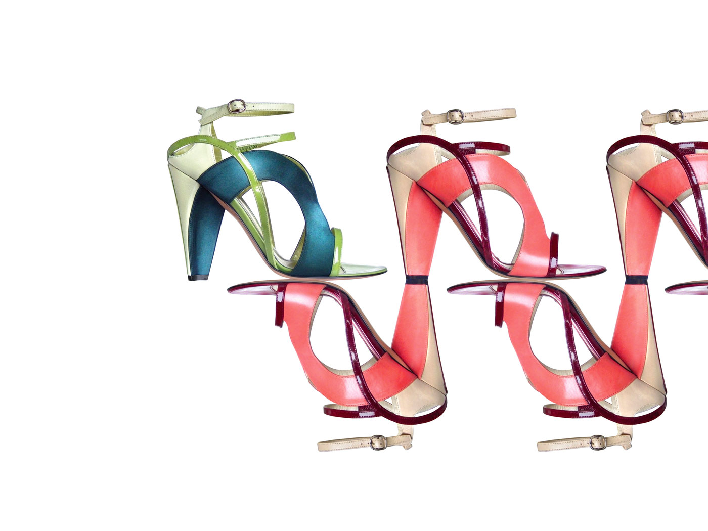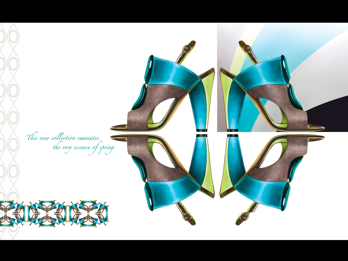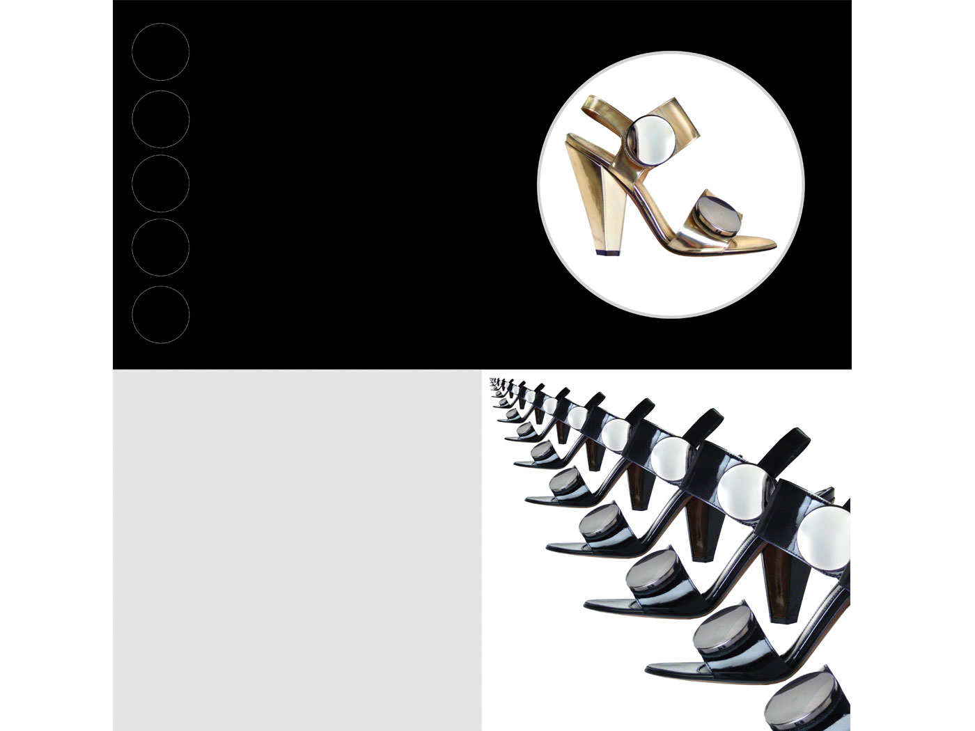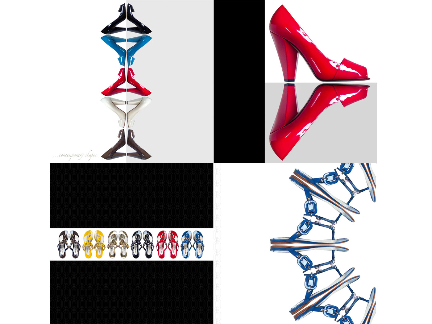 Communication was created around the product characterized by strong design and fashion content through product still life and captivating graphics. In some cases the shoe has become a decorative module and persuasive forms. Geometry and cleanliness of the shapes makes the shoe even more elegant and refined.