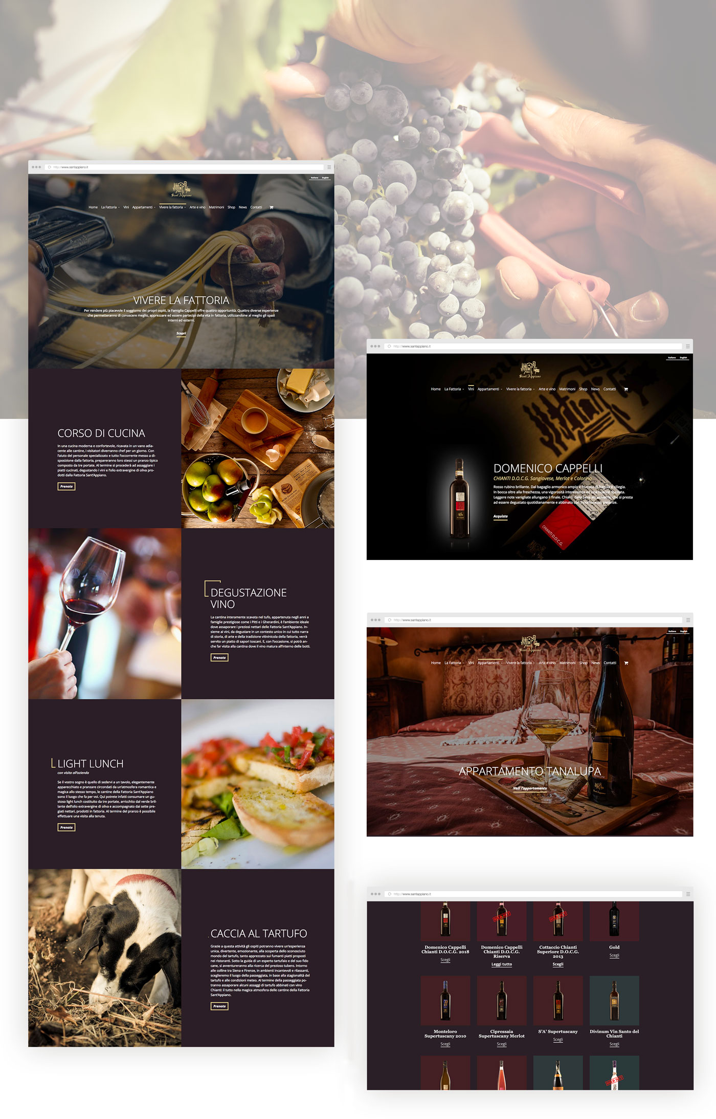 The goal of Fattoria Sant’Appiano was to create a responsive website and capable of enhancing its goods and services online both for the end user and for those who have to manage orders. The new site is not just a showcase of the services offered but it tells all the aspects related to it, involving the user in a sensorial experience, leading him to discover all the activities that the Sant’Appiano farm offers its customers. The website is completed by the e-commerce sales structure of the wines they produce.